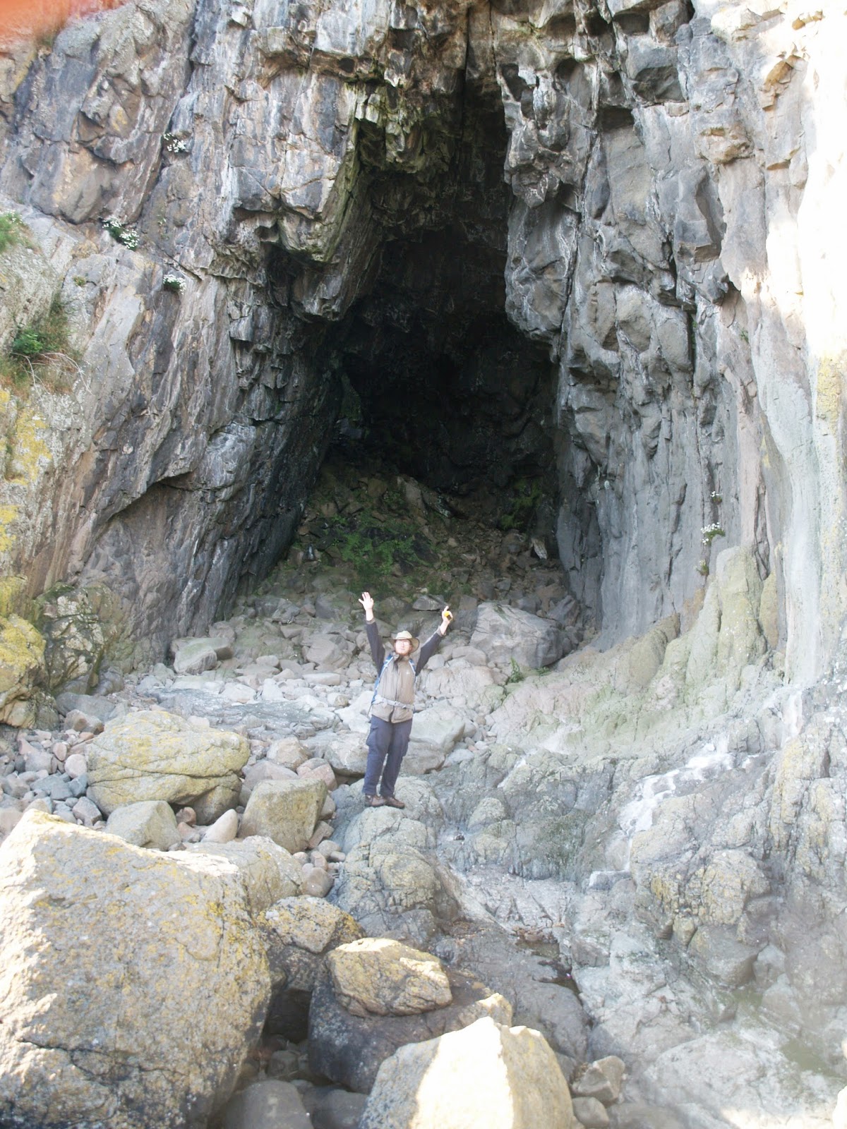 After food and a nap on the grass in Kildonan, we set off for Black Cave at 4pm. We saw loads of seals - apparently there's a colony of 40-50 just off Kildonan. Our timing was perfect, and we clambered over the boulder field on the approach to Black Cave, arriving spot on at 6pm. Sadly, our tide forecast was not so good - it still wasn't passable.